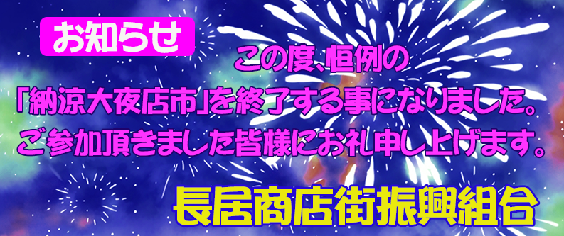 長居商店街振興組合は昭和30年11月長居商店会として設立し、昭和52年11月に振興組合として法人化し地域住民とのコミュニケーションの 場、情報基地の場として日夜努力しております。 また、サッカーJリーグのセレッソ大阪のホームタウンとして、そのサポートも図り長居スタジアムの数々のイベントに地元商店街と他の商店会共々応援しております。